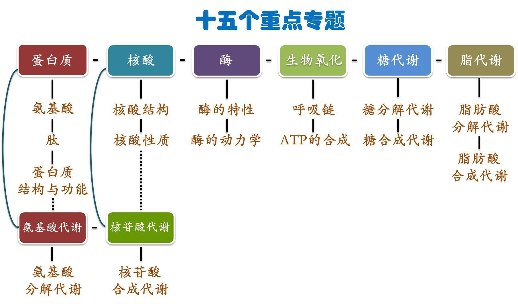 本着降低结构生物化学比重、弱化分子生物学内容、突出代谢生物化学地位的原则,本课程共设置 8 章,包括结构生物化学 3 章和代谢生物化学 5 章,共计 50 个知识点。结构生物化学包括蛋白质化学、核酸化学和酶化学,介绍包括氨基酸、肽、蛋白质、核酸、酶的结构、生理功能,蛋白质、核酸一级结构与高级结构的关系,蛋白质物质结构与功能之间的关系,酶促反应动力学特征等内容。代谢生物化学是本课程重点内容,包括化学渗透假说机制,生物氧化类型,糖酵解、三羧酸循环、糖异生、脂肪酸 β- 氧化、脂肪酸合成、氨基酸分解、核苷酸合成等代谢途径关键酶及生理意义。通过运用结构和代谢生物化学原理和方法,理解生命过程中所发生的现象;运用代谢生物化学的原理和方法,理解代谢异常与疾病的关系。具体安排如下。