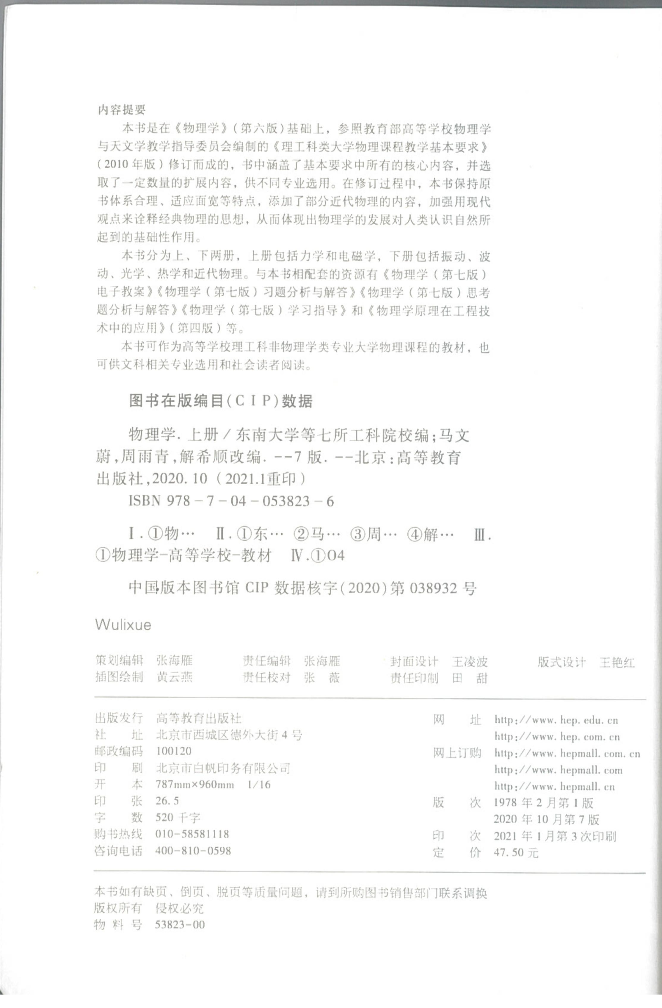 物理学研究物质、物质的运动以及物质之间的相互作用。物理学是以实验为基础的科学,也是自然科学的基础。物理学每次重大的发现和突破,都引发了新领域、新方向的发展,带动了新学科、交叉学科和新技术的发展。《大学物理》的教学内容由力学、电磁学、振动和波、光学和热学几个部分组成,讨论机械运动,电磁场的运动和电磁相互作用,宏观领域的波动,光的干涉、衍射和偏振,由大量分子组成的热力学系统的宏观表现和统计规律。