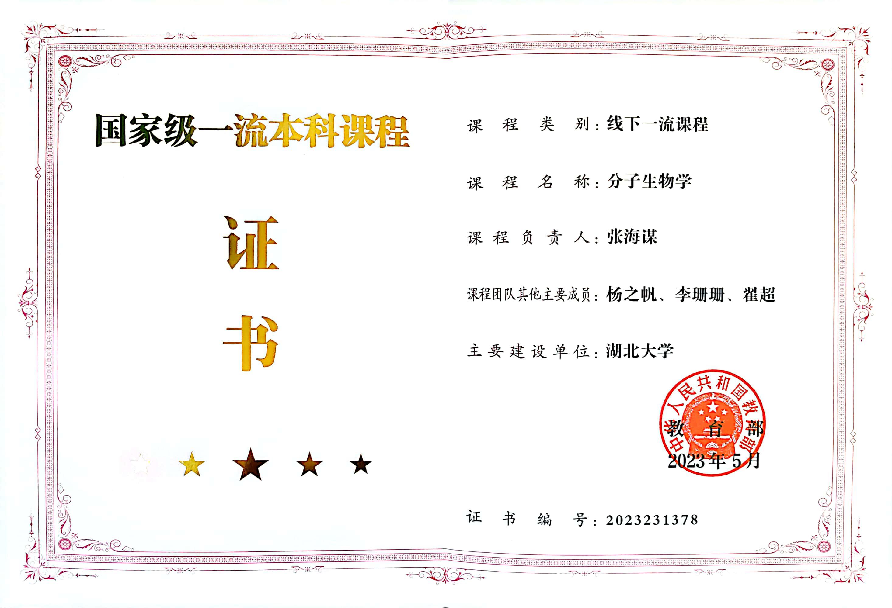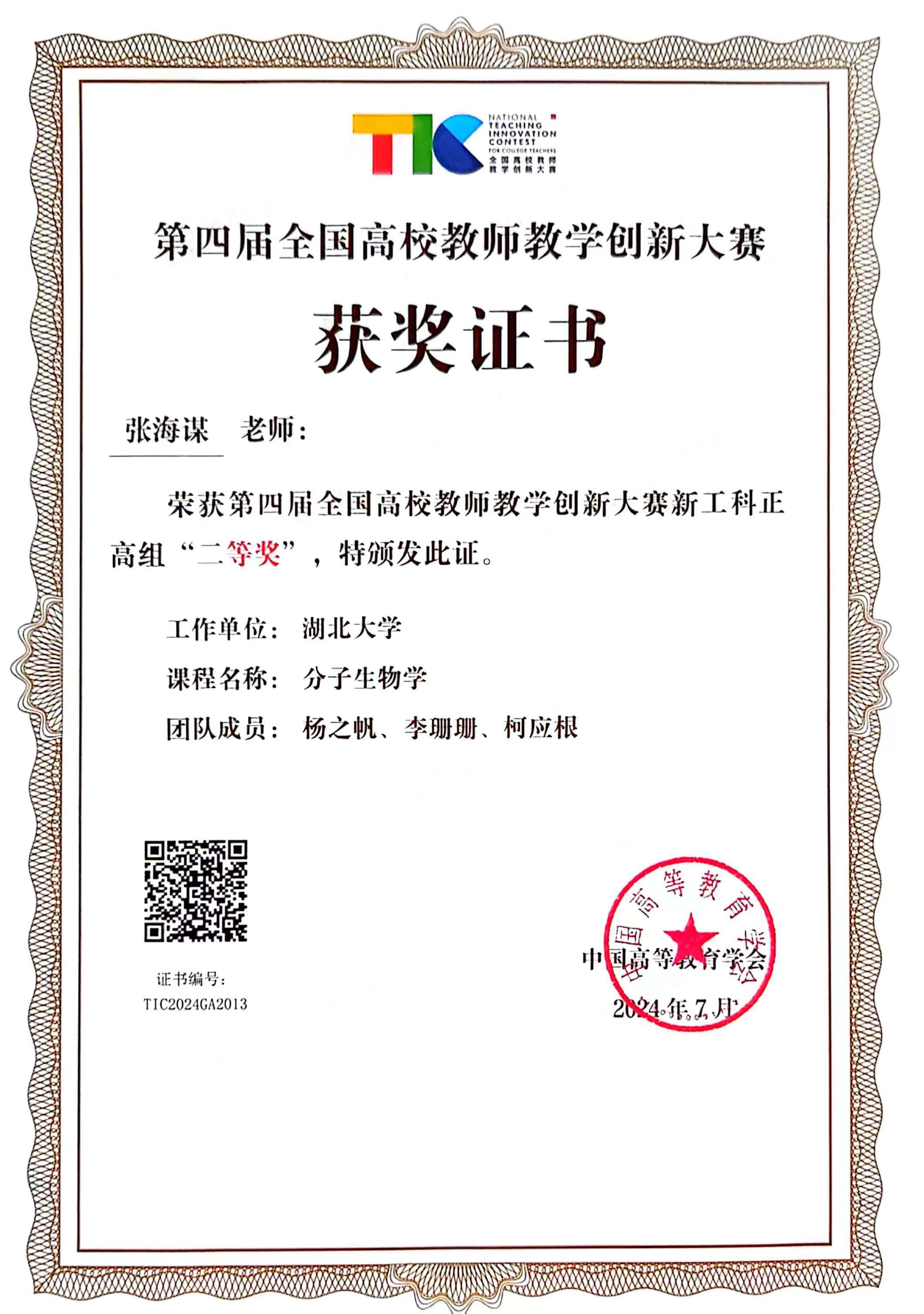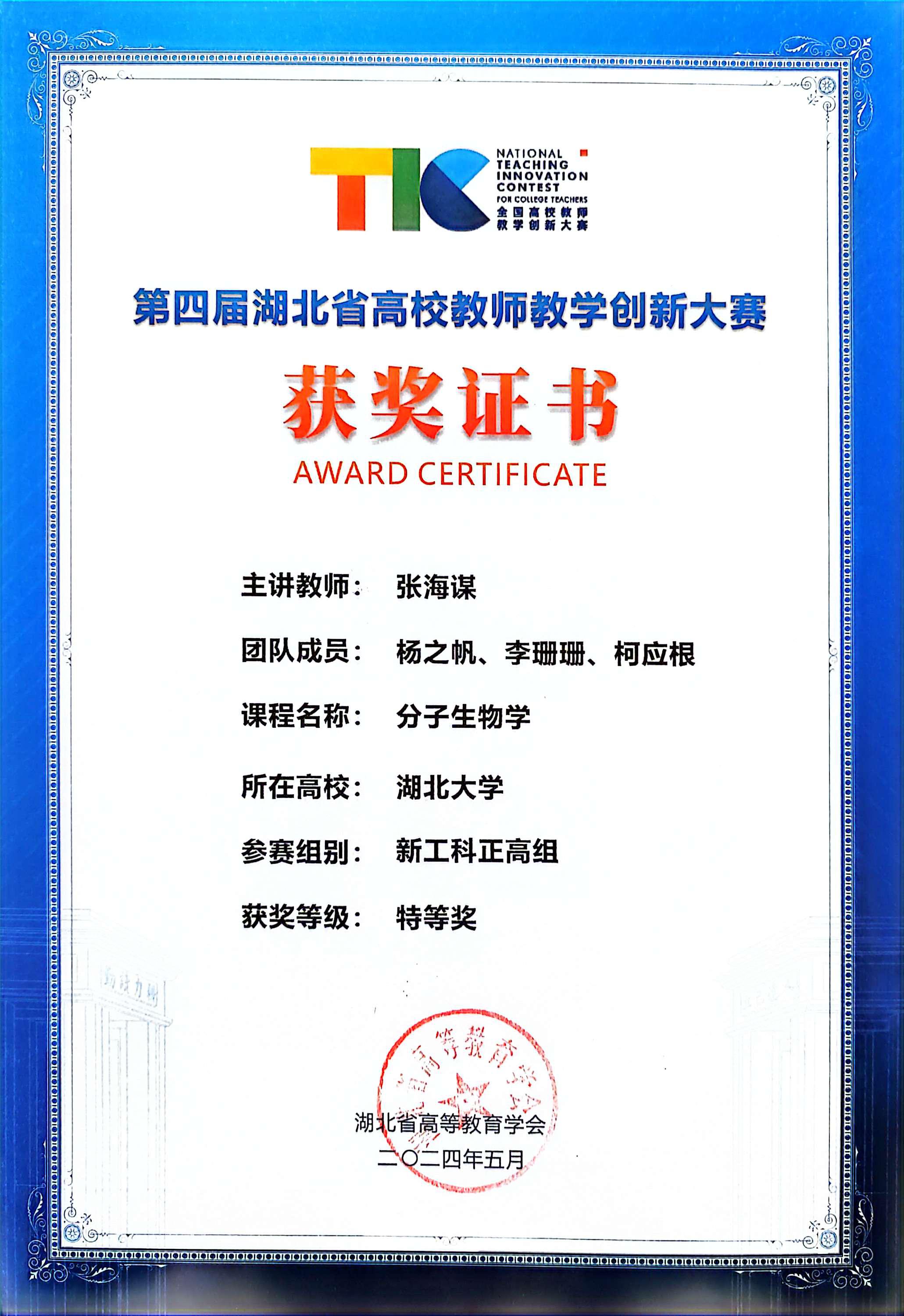 经过30余年建设,本课程获批国家级一流本科课程(2023年)、湖北省本科课程思政示范项目(2023年)。主讲教师张海谋教授获全国高校教师教学创新大赛二等奖(2024年)、湖北省高校教师教学创新大特等奖(2024年)。