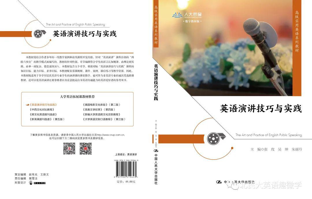 同时,为了更好的帮助大家更好的学习本慕课,我们还专门编写并出版了与慕课配套的数字化教程《英语演讲技巧与实践》。