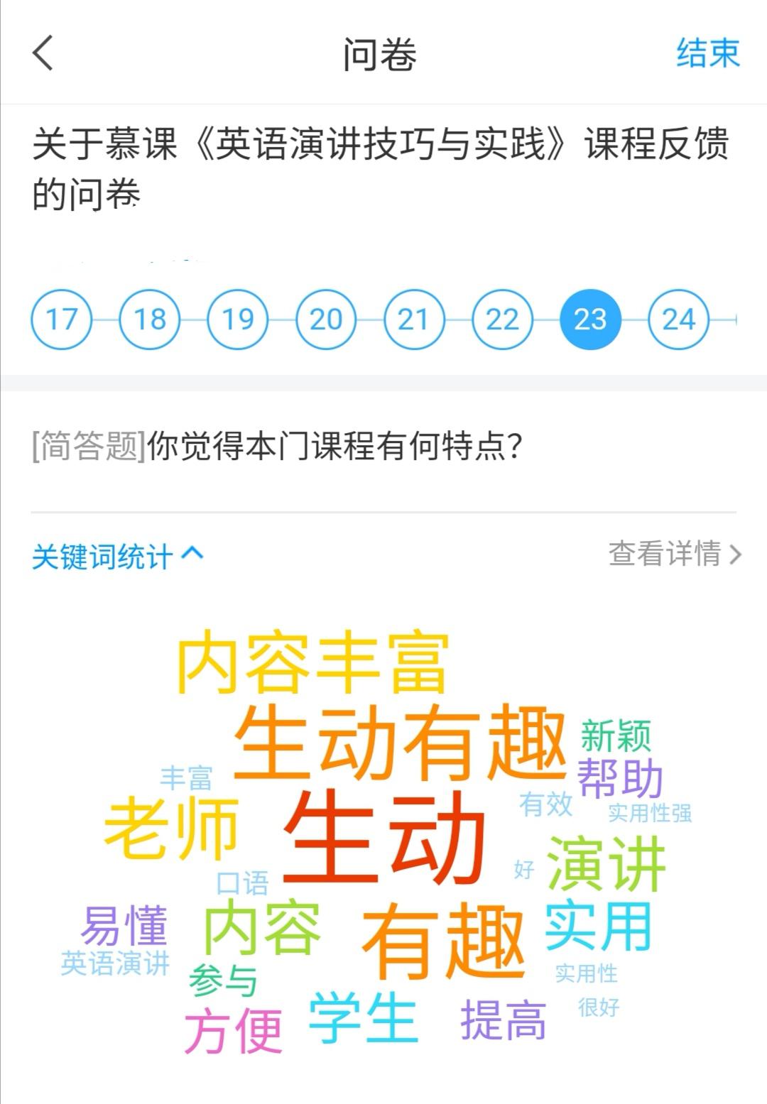 张文婧:有点惊喜加惊讶,本来抱着多接触英语提高成绩的目的,因为初中高中英语一直不好,也没有报太大希望,可是!!!听了老师的课,我竟然发现我英语语感提升了,做学校的U校园正确率也提高了,最明显的是听力真的能听懂一些了!!!