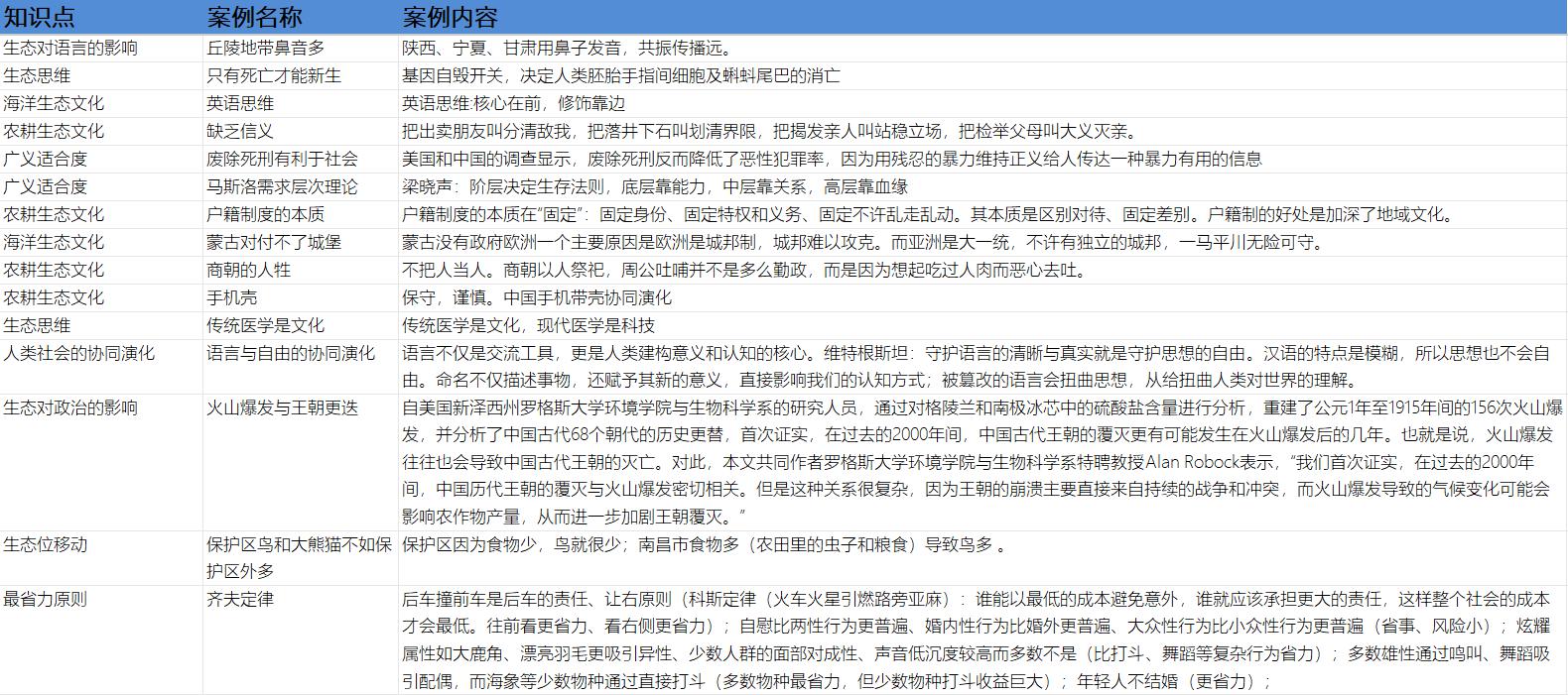 2、知识目标2:掌握地域生态文化基本特征、种内及种间关系类型及特点、协同演化类型
