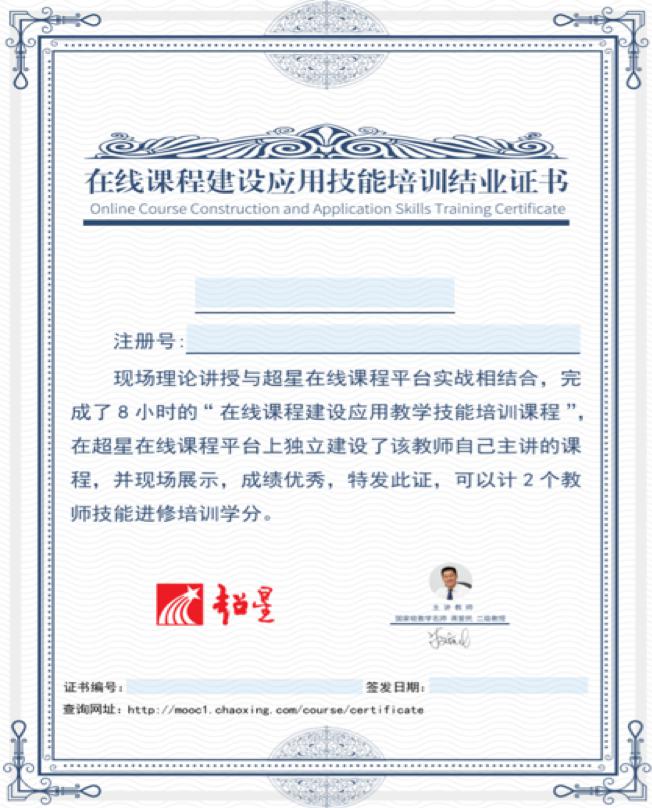 (7)教师在线课程建设应用培训证书:教师利用本课程开展“混合教学”3期,并理论研讨交流,合格者即可获得国家级教学名师、教育部本科审核评估专家蒋爱民二级教授签发的“教师在线课程建设应用培训证书”(领取方法见“优秀学生慕课证书”)。