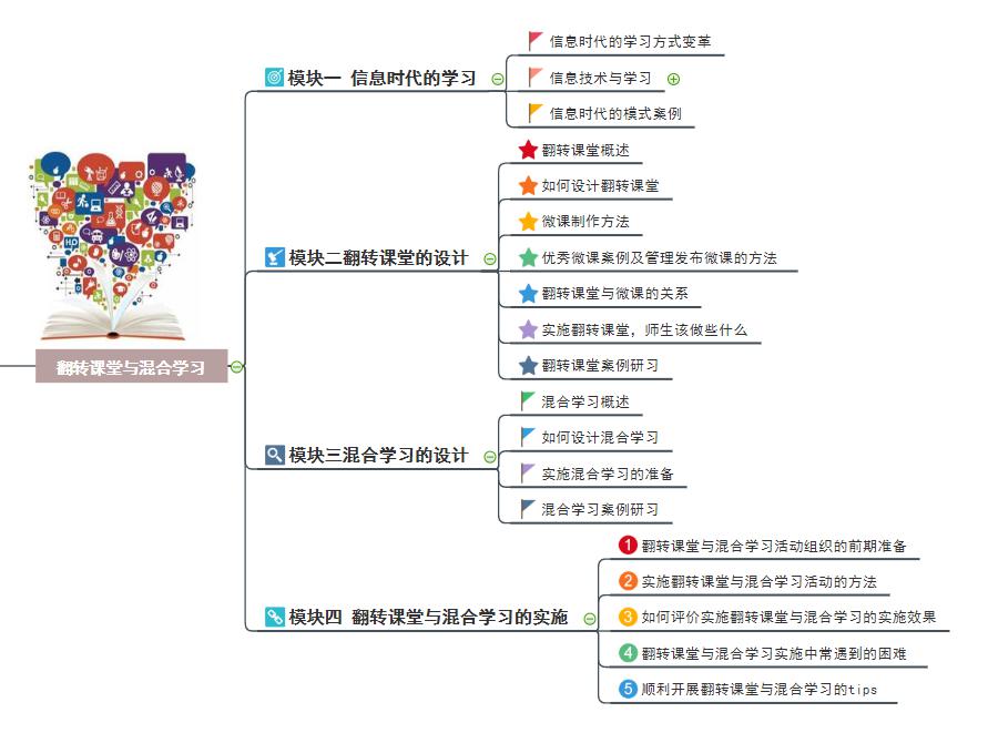 本课程从技术应用课堂的角度出发,聚焦翻转课堂与混合学习的实施,构建了四个学习专题:“信息时代的学习”、“翻转课堂的设计”、“混合学习的设计”、“翻转课堂与混合学习的实施”。我们将不断探索,将教育科技融入传统课堂,优化教学效果。